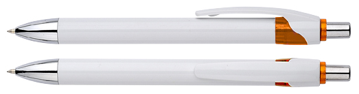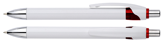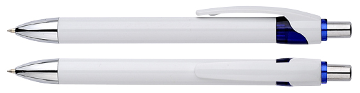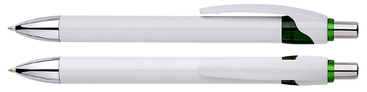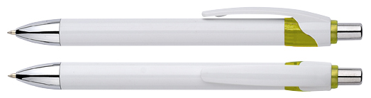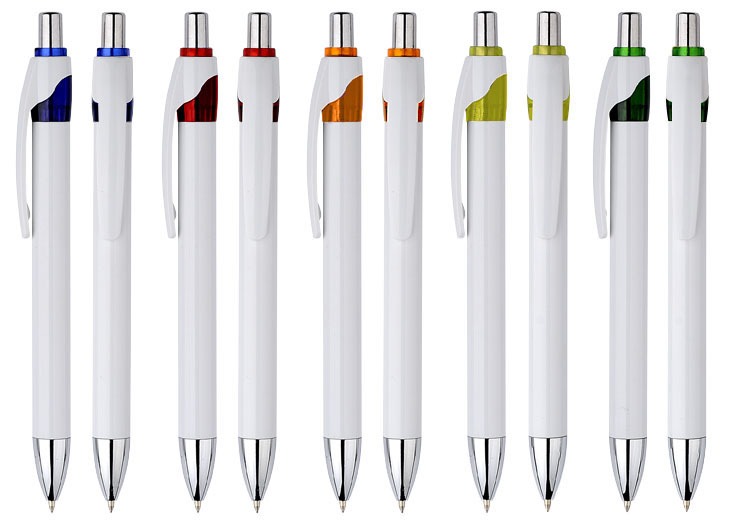 Bolígrafo plástico cuerpo blanco aplicación color. Colores: Azul, rojo, café, amarillo,verde