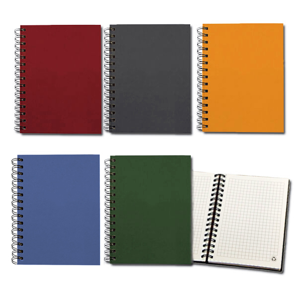 Libreta ecológica compost del color de la libreta. Hojas marcadas con signo de reciclaje. Anillado metálico doble cero. 70 Hojas de papel beige sin líneas 70 grs.