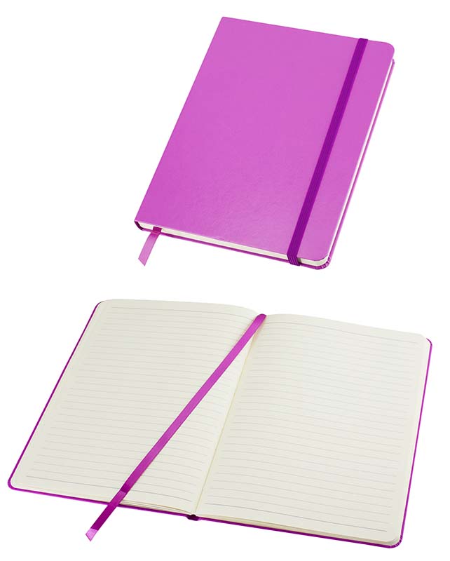 elástica y huincha separador de hojas al tono. Presentación individual en bolsa plástica.