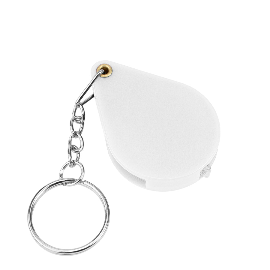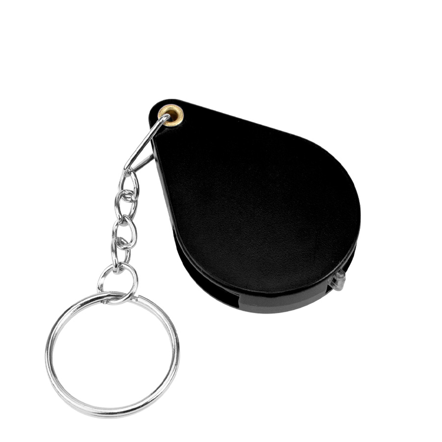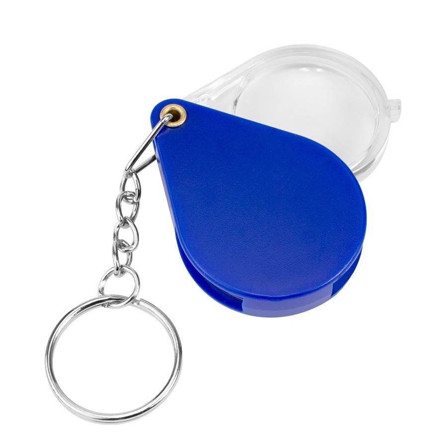 Llavero disponible en distintos colores, con argolla metálica y practica lupa para lectura.