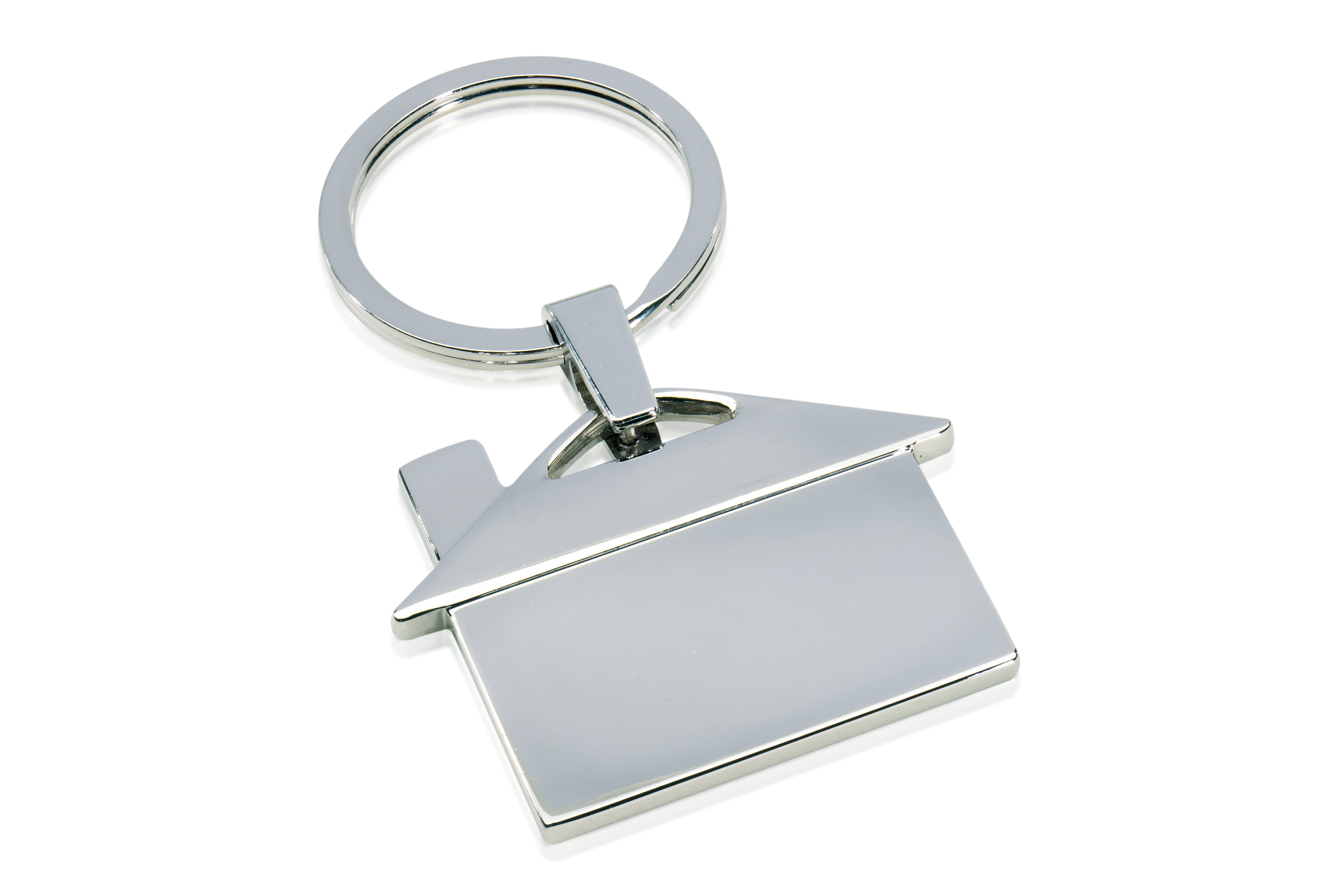 Llavero Metálico en forma de casa. Presentación en caja de regalo.