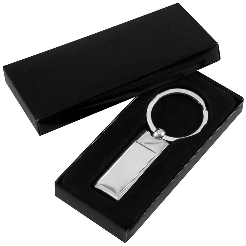 Llavero publicitario metálico, liso una cara y por la otra con recuadro satinado. Colores: Silver.