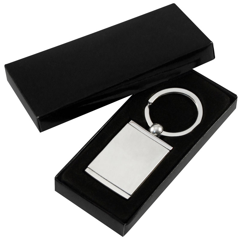 Llavero Metálico Porta-Foto. Presentación en estuche laminado negro con cuna aterciopelada.