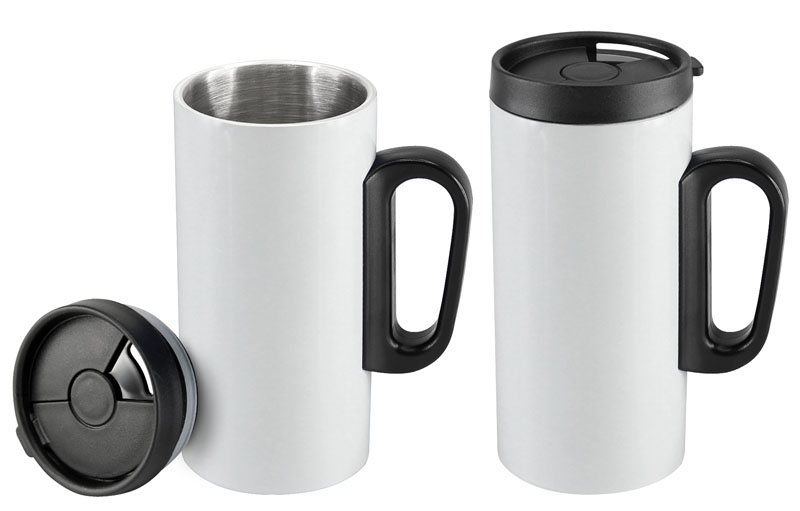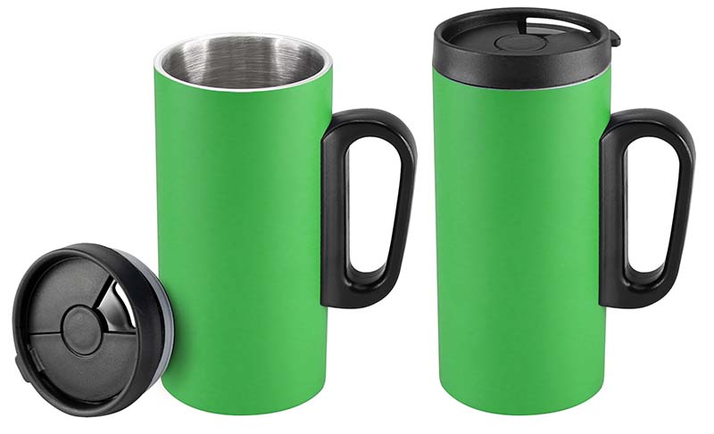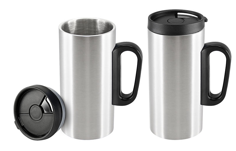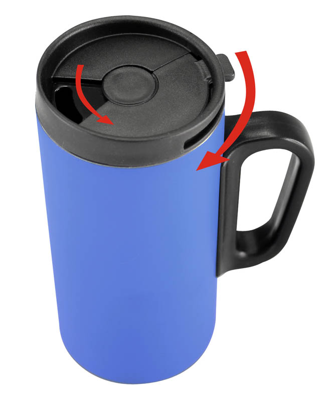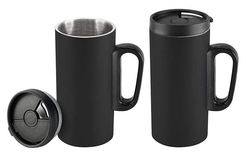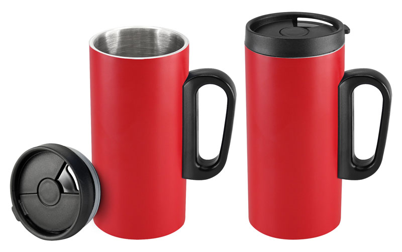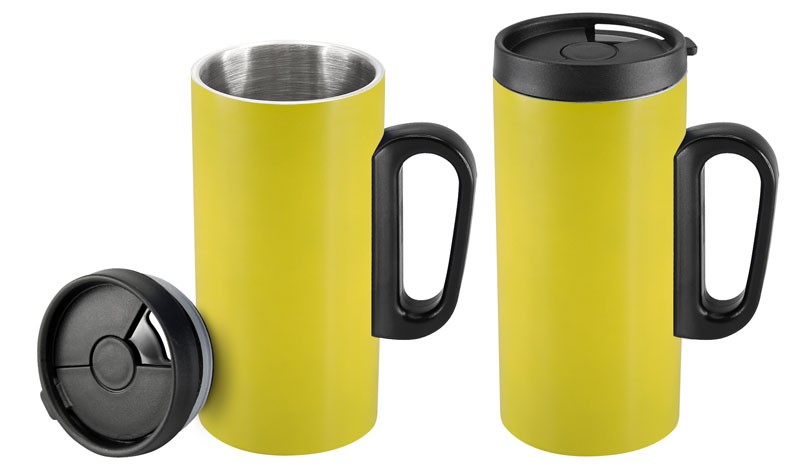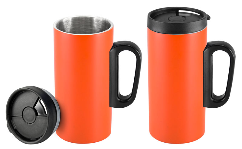 Mini tazón para café, de acero inoxidable, doble pared aislante, cuerpo exterior color. Tapa de plástico PP negro con dosificador móvil. Capacidad: 250 cc.