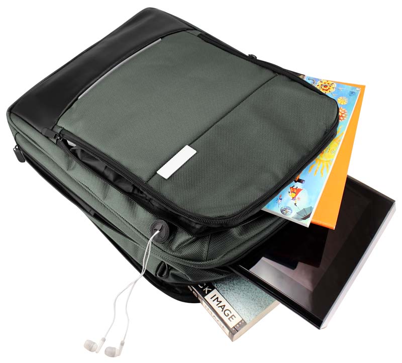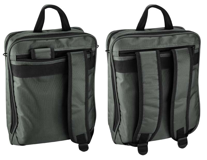 Maletín Porta-Notebook, con doble compartimento interior + bolsillo delantero y placa metálica de 5 x 1.5 cm para grabar logo. Incluye bolsillo posterior con asas para convertir en Mochila.