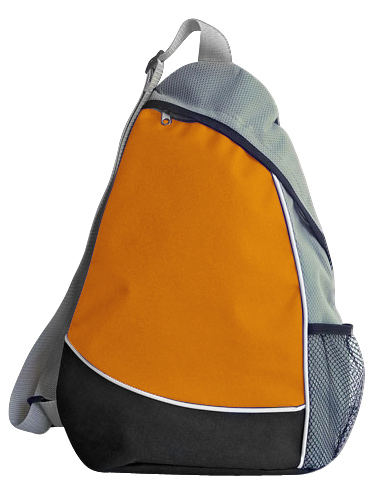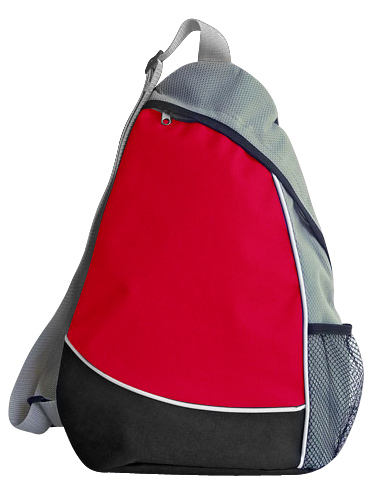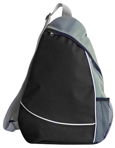 Mochila cruzada en tela raquelada polyester 600D con aplicación TNT gris.