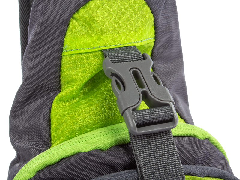 Mochila cruzada, en tela poliéster Stretch 210 Waterproof y poliéster Ripstop. Incluye 2 compartimentos independientes + 1 bolsillo delantero + 1 bolsillo malla ajustable, gancho para colgar y hebilla de protección delantera. Reverso acolchado, con tela malla anti-transpiración para la espalda. Ideal para practicar deportes. Capacidad: 3.5 lt