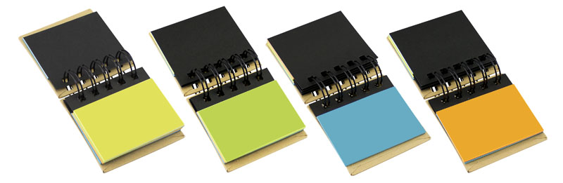 Cartón. Material reciclable. 5 blocks autoadhesivos rectangulares grandes. 5 blocks autoadhesivos rectangulares chicos. Anillado.