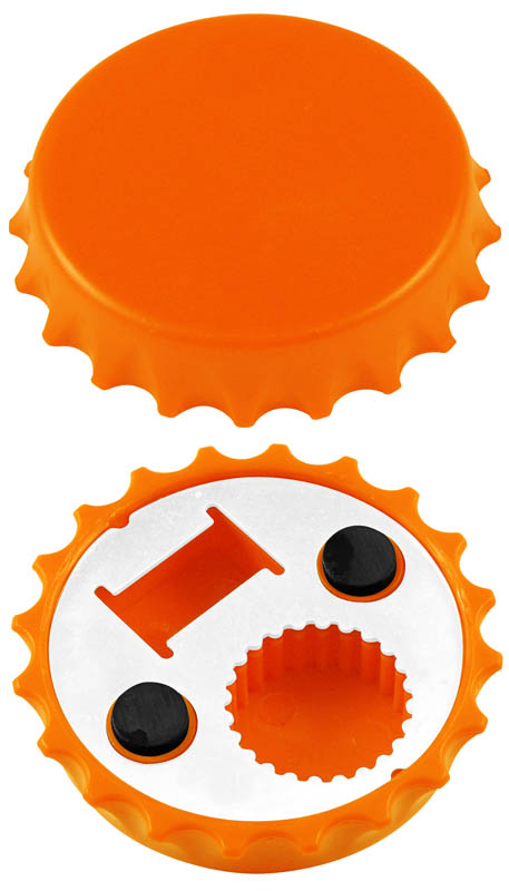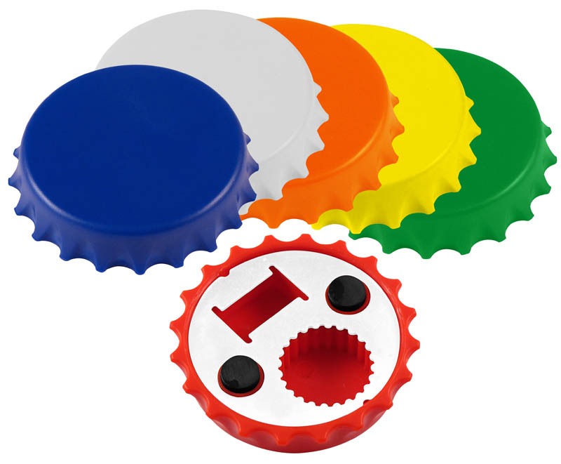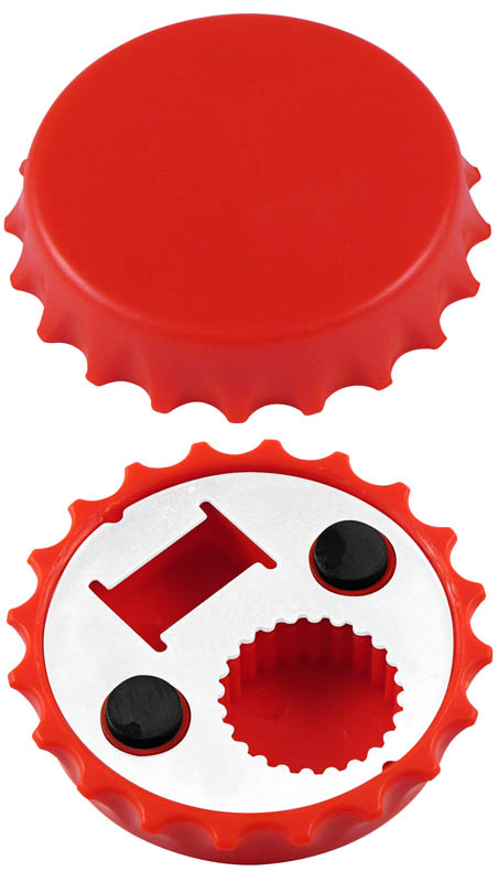 Destapador y Abridor de tapas twist-o, con forma de tapa de botella. Imantado para refrigerador.