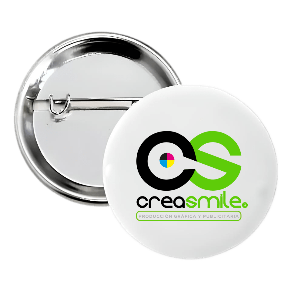 Chapita gancho base metálica gráfica full color. Incluye mica transparente para protección de la humedad y alfiler de gancho.
