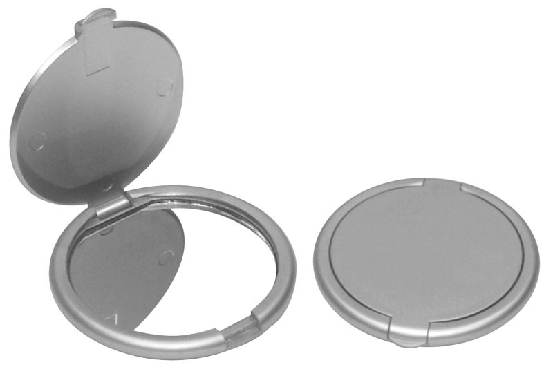Espejo plateado metalizado redondo de bolsillo, ideal para cartera y neceser.
