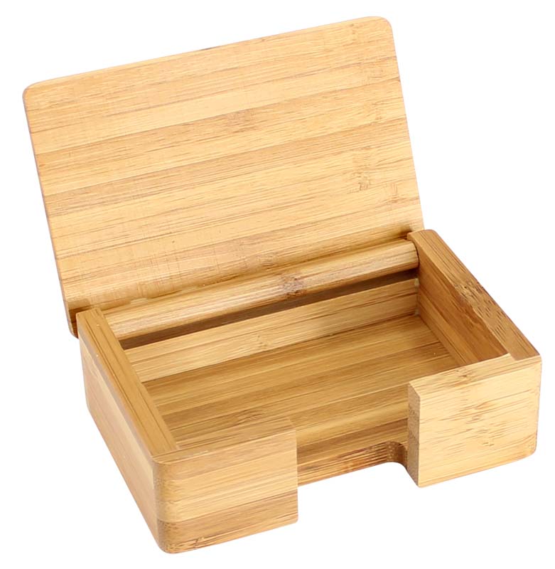 Porta-tarjetas de visita de sobre mesa en madera de bambú.
