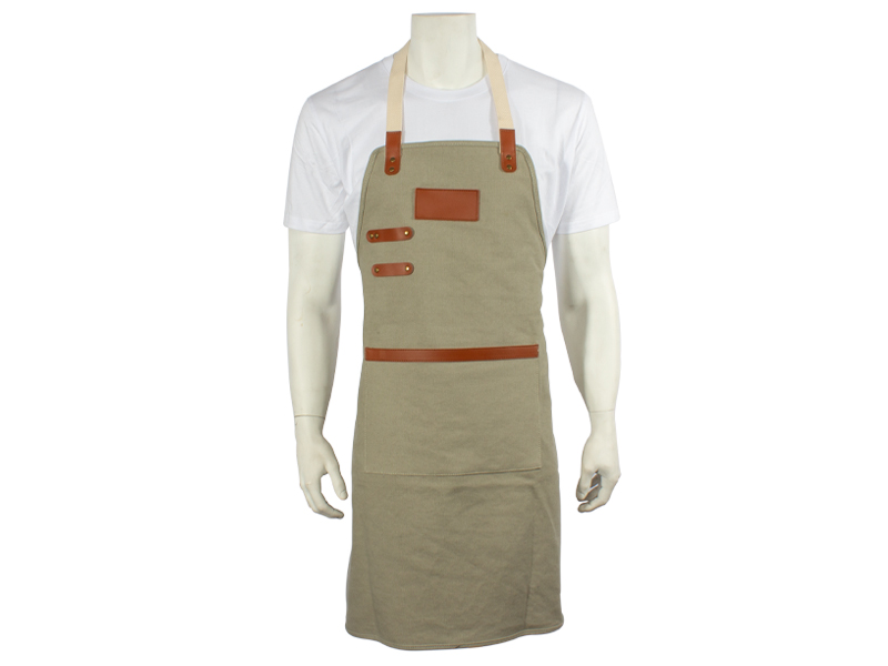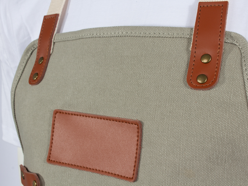 Pechera de asador en canvas algodón natural, con detalles en Eco-Cuero café. Incluye bolsillo delantero grande de 30 x 20 cm., compartimento para cuchillo o tenazas y etiqueta cosida de eco-cuero de 10 x 5 cm., para grabar logo. Presentación en elegante caja de regalo de cartón negro.